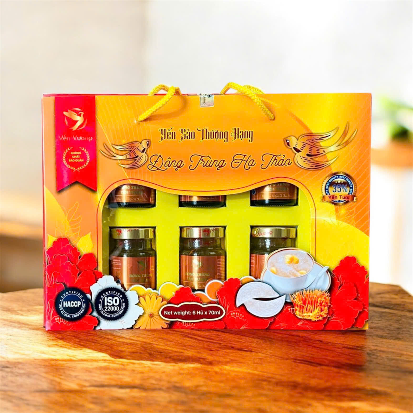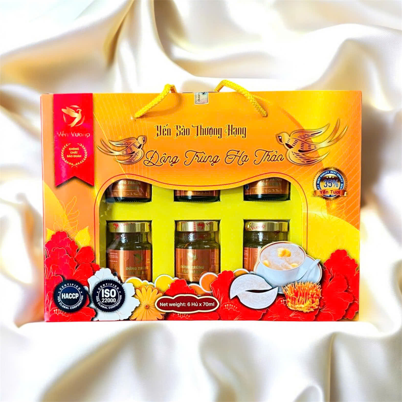 Hộp quà lớn 6 hũ yến Vương 70ml Đông Trùng